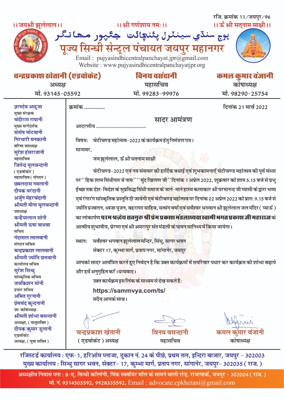Venue : सिंधु सागर गार्डन सेक्टर 17 कुम्भा मार्ग प्रताप नगर