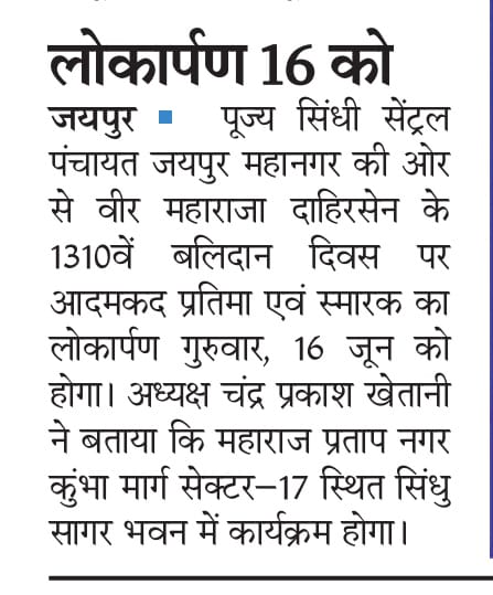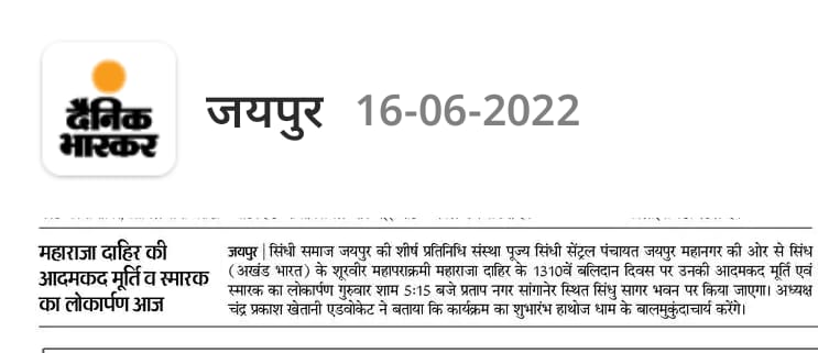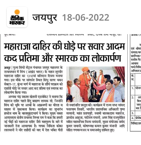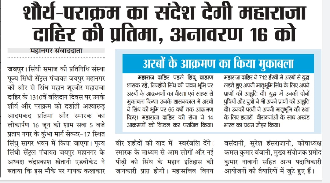 महाराजा दाहिर का 1310वां बलिदान दिवस